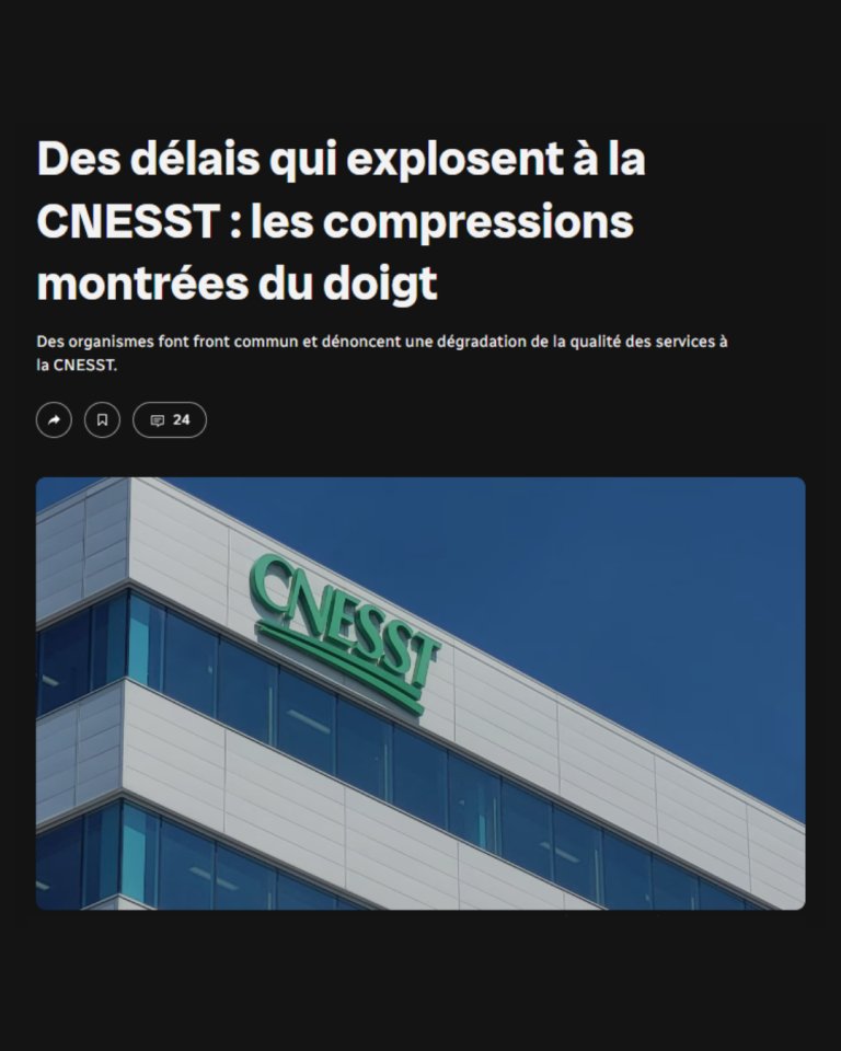Lundi dernier, Radio-Canada publiait un article (dans lequel Au bas de l’échelle est intervenu) sur la dégradation de la qualité des services offerts par la CNESST, notamment causée par les compressions budgétaires. 📉